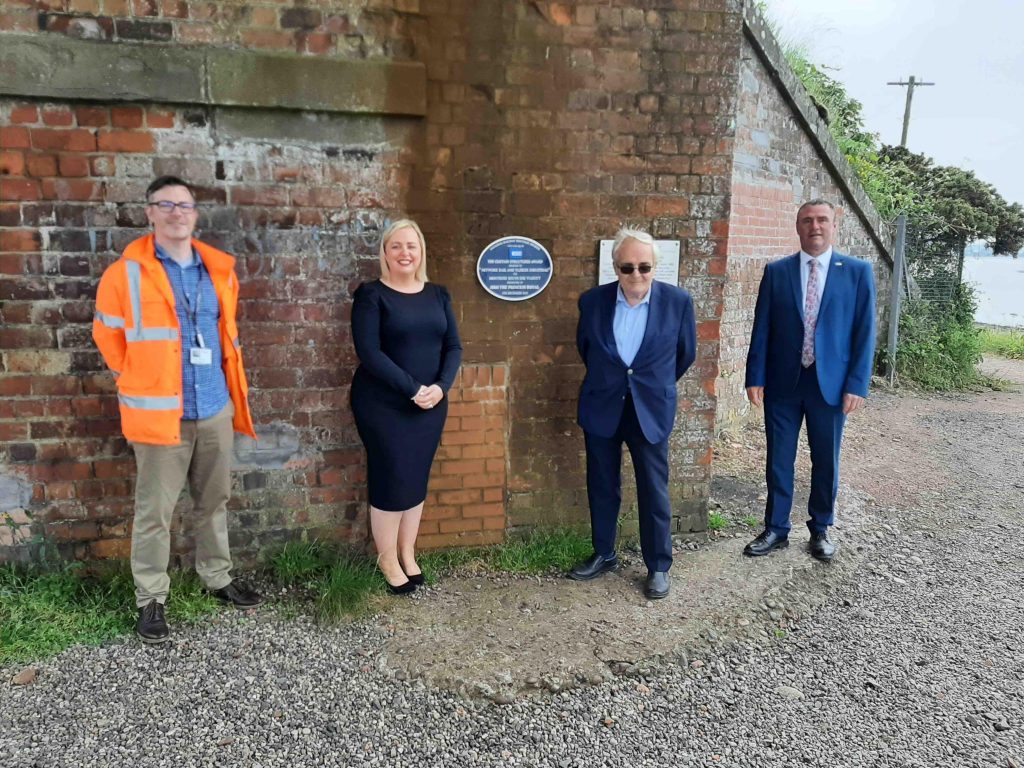 The plaque on the viaduct at Montrose after its official unveiling with, from left to right, Michael McArthur, Network Rail Project Manager, Laura Craig, Network Rail Scheme Project Manager, Theo Steel and Rod Hendry, Network Rail Construction Manager.