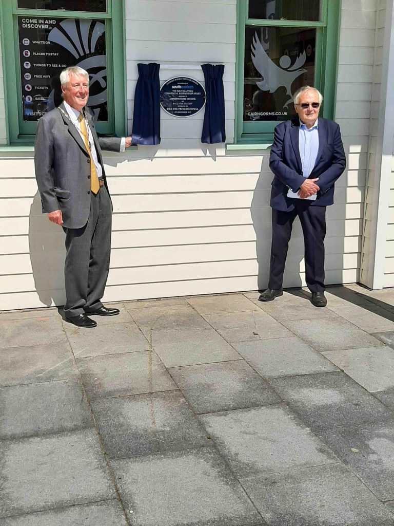 The second unveiling took place at Ballater station where the Provost of Aberdeenshire, Councillor Bill Howatson, officiated. The restored station, which had been severely damaged by fire and which had been entered by Aberdeenshire Council, received the Southeastern Commercial Restoration Award at the 2019 ceremony. Its triumph at the time drew some personal comments from that year’s guest of honour – HRH The Princess Royal – as Ballater had been the station most convenient for Balmoral until its closure in the 1960s.