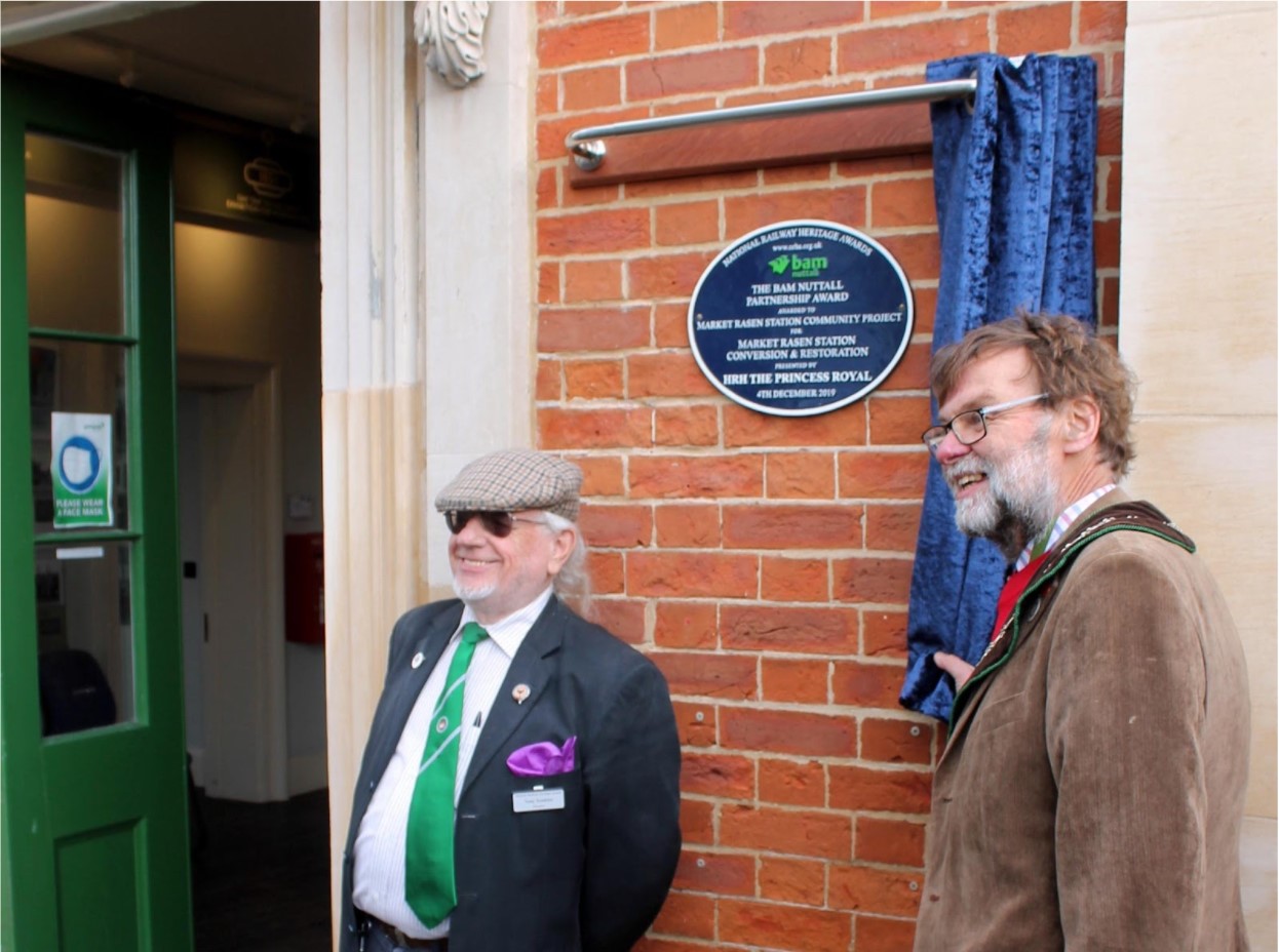 The plaque awarded, one of a number made as part of the National Railway Heritage Award’s 40th anniversary year, was formally unveiled on the building by the Town Mayor of Market Rasen, Councillor Stephen Bunney, on Wednesday 3 November 2021 following delays caused by Covid-19 restrictions.