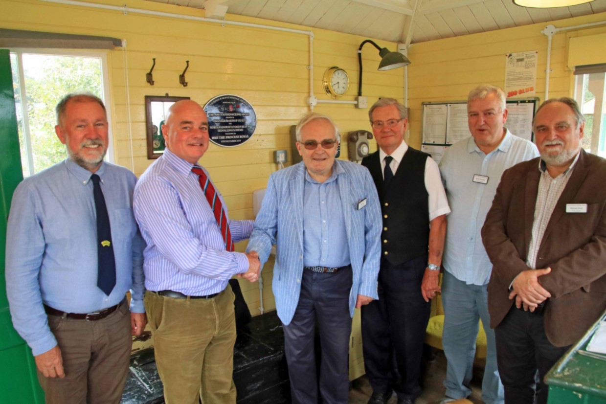 On Saturday 4 September representatives of the Swanage Railway and the National Railway Heritage Awards gathered at Norden for the formal unveiling of the plaque awarded to the railway by the National Railway Heritage Awards for the signalling scheme undertaken in connection with the railway’s plans for through services to Wareham.