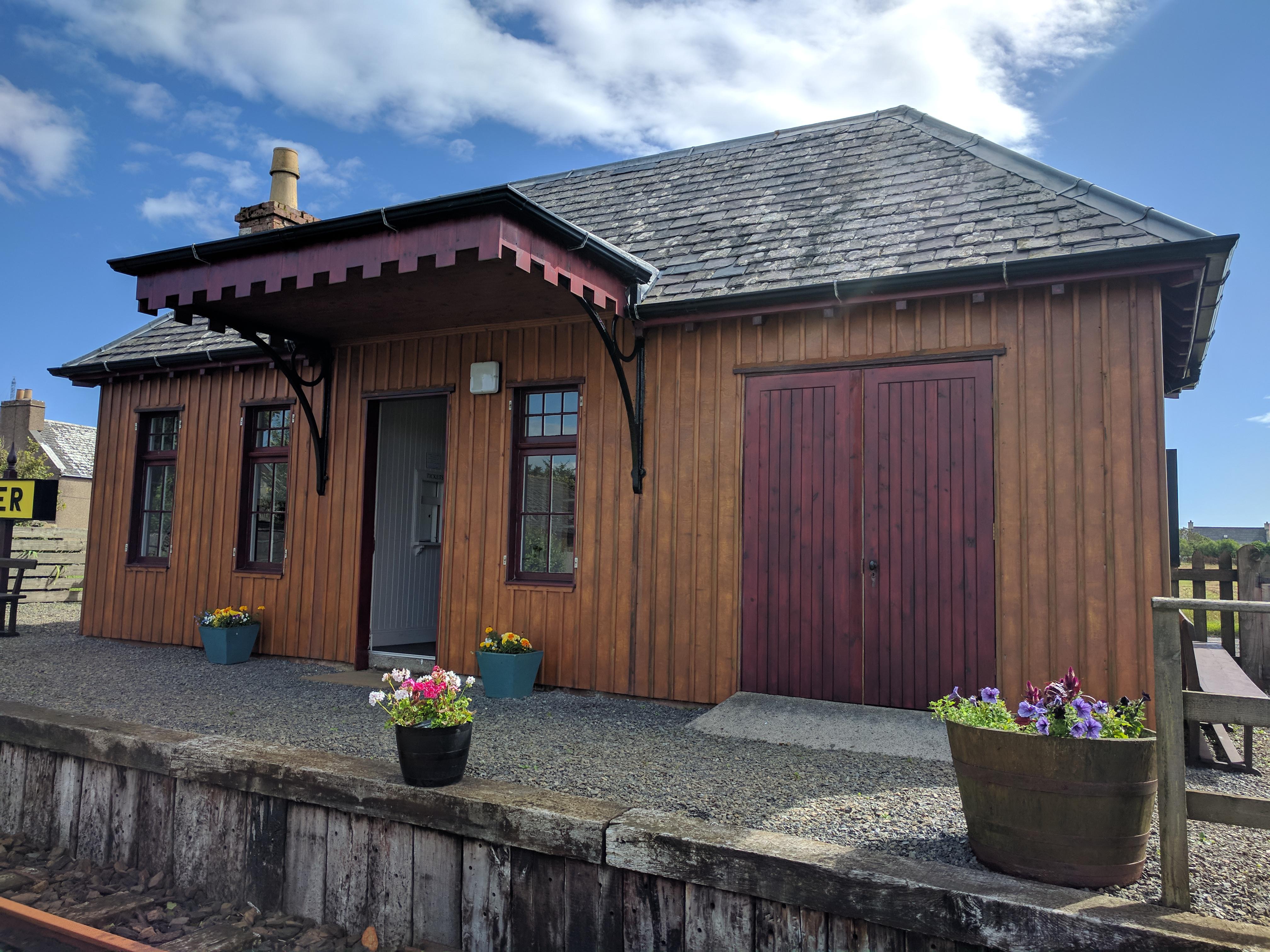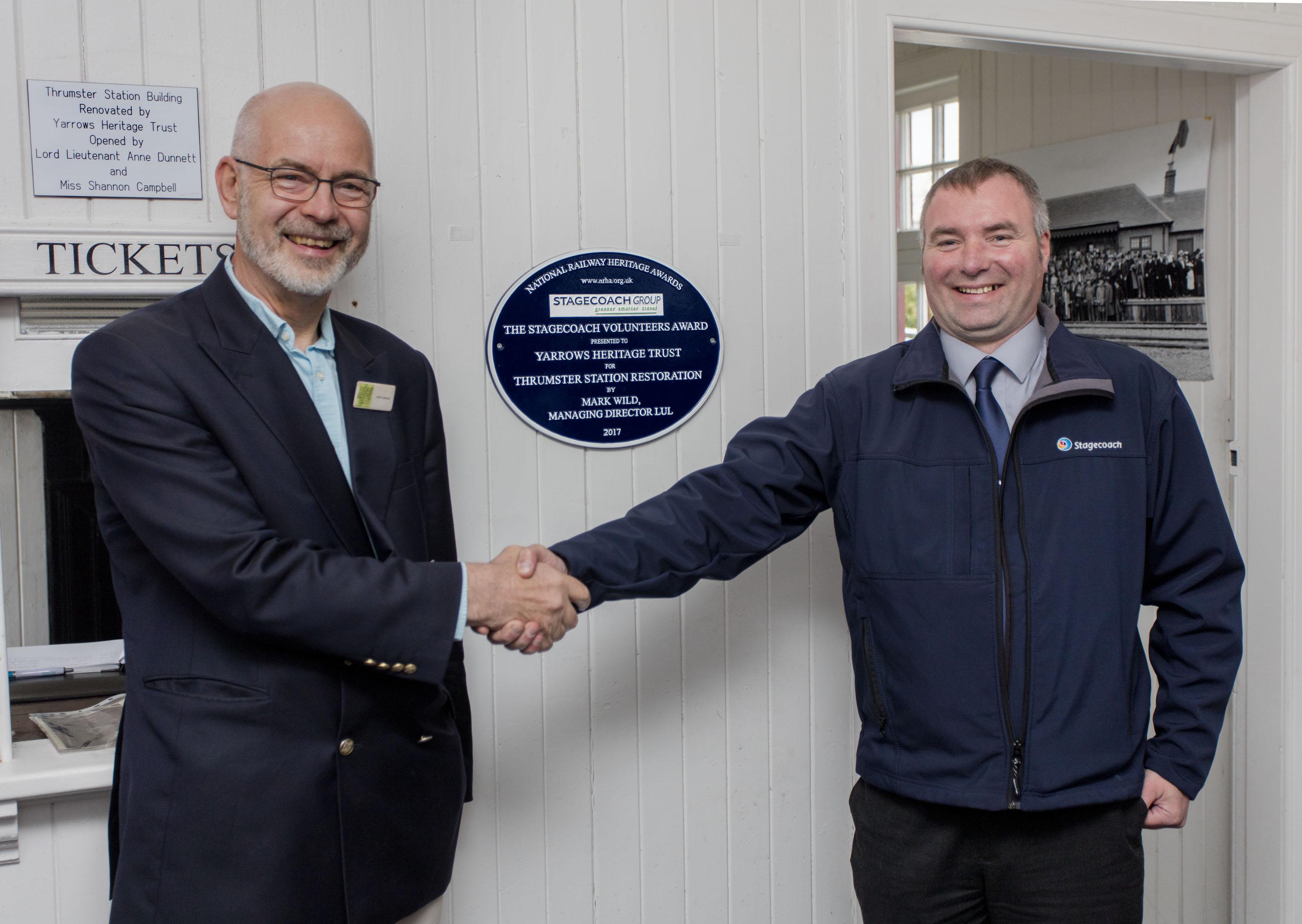 The Wick & Lybster Light Railway – located in the far north of Scotland – was a line that disappeared before Nationalisation. However, the successful restoration of one of the route’s surviving structures was marked at the 2017 National Railway Heritage Awards – held in December 2017 – when the Yarrows Heritage Trust was awarded the Stagecoach Volunteers Award for the superb work in bringing the building back into use. The plaque for the award was formally unveiled on Tuesday 21 August 2018 by John Gunn of sponsors Stagecoach. As the citation at the award ceremony commented: ‘The restoration of this station from a long closed line has been completed to a high standard. It is gratifying to see such an historic structure brought back into use and all involved can look back with pride on a project brought to an extremely successful conclusion.’